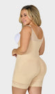 Faja corta moldeadora con espalda cubierta, incluye hombreras removibles que ofrecen soporte en esta zona, refuerzo abdominal que controla y moldea la figura. Cuenta con una opción de abrochadura interna, cierre frontal y cierre en la parte inferior que facilita el uso del baño; realce natural en glúteos con un diseño exclusivo y discreto. Es de compresión alta y está disponible en color beige y negro; podrás encontrarla desde la talla 2XS hasta la 3XL.
