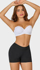 Short extracorto de compresión media, con talle bajo y siliconado en cintura que permite que la prenda se adhiera a la piel con facilidad, cuenta con 4 varillas pequeñas que mantienen el encaje en su lugar evitando que se enrolle, también incluye realce natural en glúteos con un diseño exclusivo y discreto.
