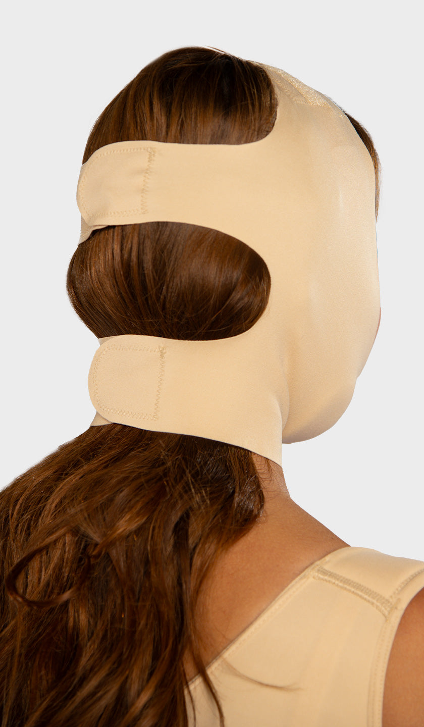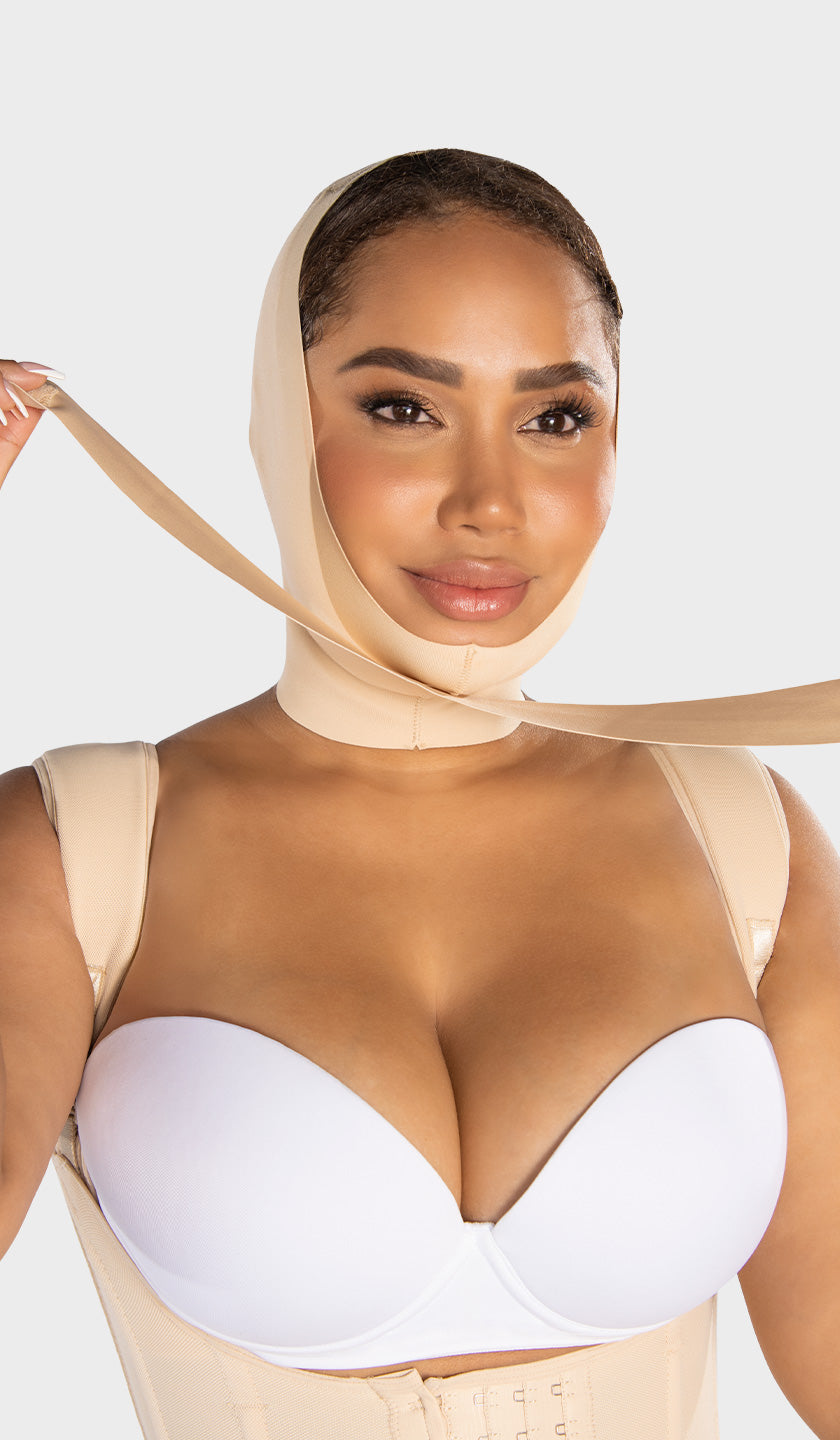 Prenda diseñada para mujeres que buscan una recuperación cómoda y un rostro más definido tras procedimientos estéticos.