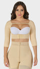 Chaleco con mangas para dama, con mayor cobertura en la espalda y brazos, incluye tira estabilizadora removible en la zona del busto que permite mantener la manga de la prenda en su lugar y cuenta con 4 niveles de abrochadura. Es de compresión alta y está disponible en color beige; podrás encontrarlo desde la talla XS hasta la 2XL.